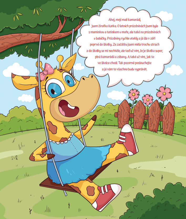 Balíček obsahuje knihu a motivační omalovánky Žirafka Katka jde do školky.