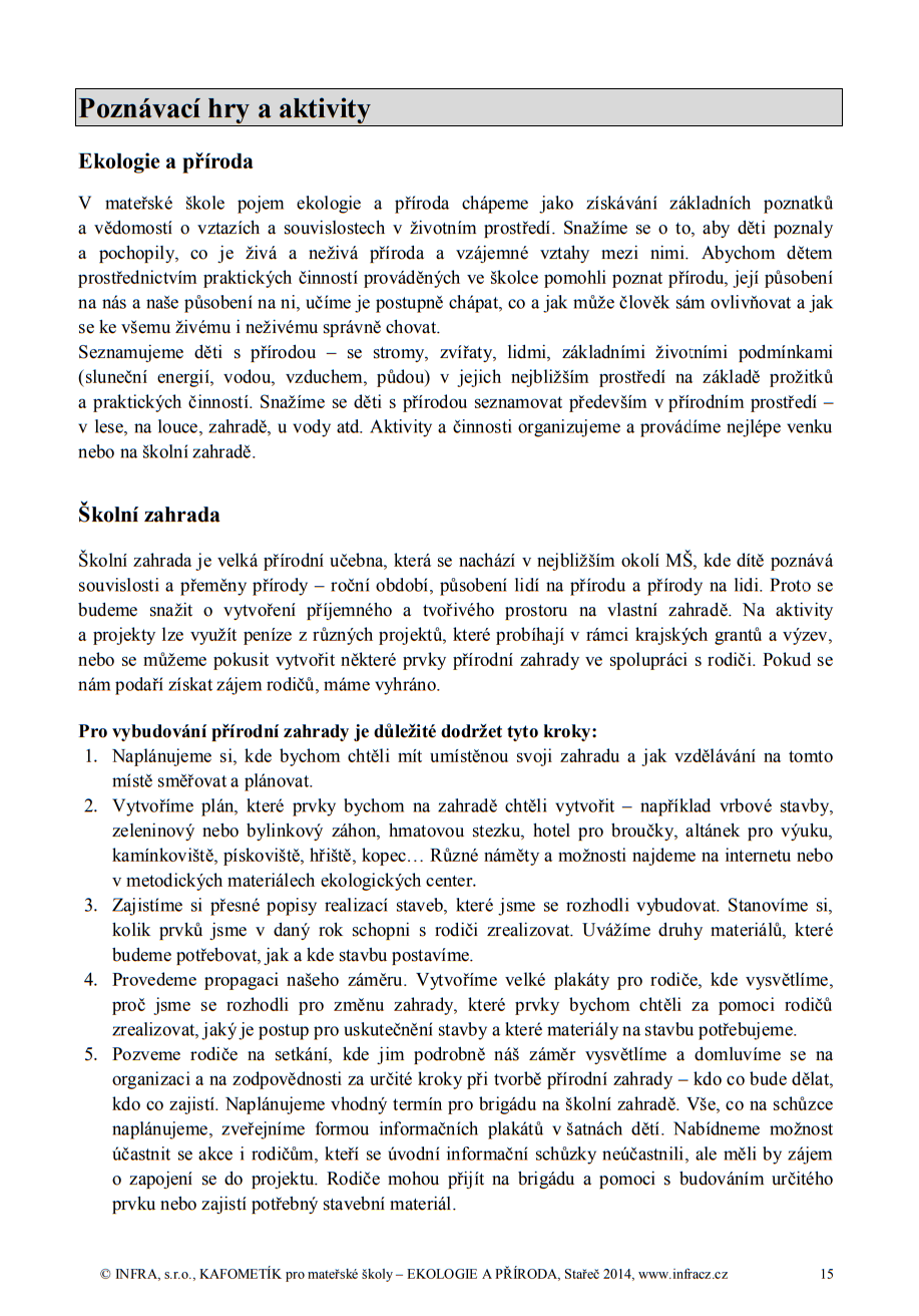 - metodické náměty pro činnosti a aktivity z oblasti poznávací, pohybové, výtvarné
