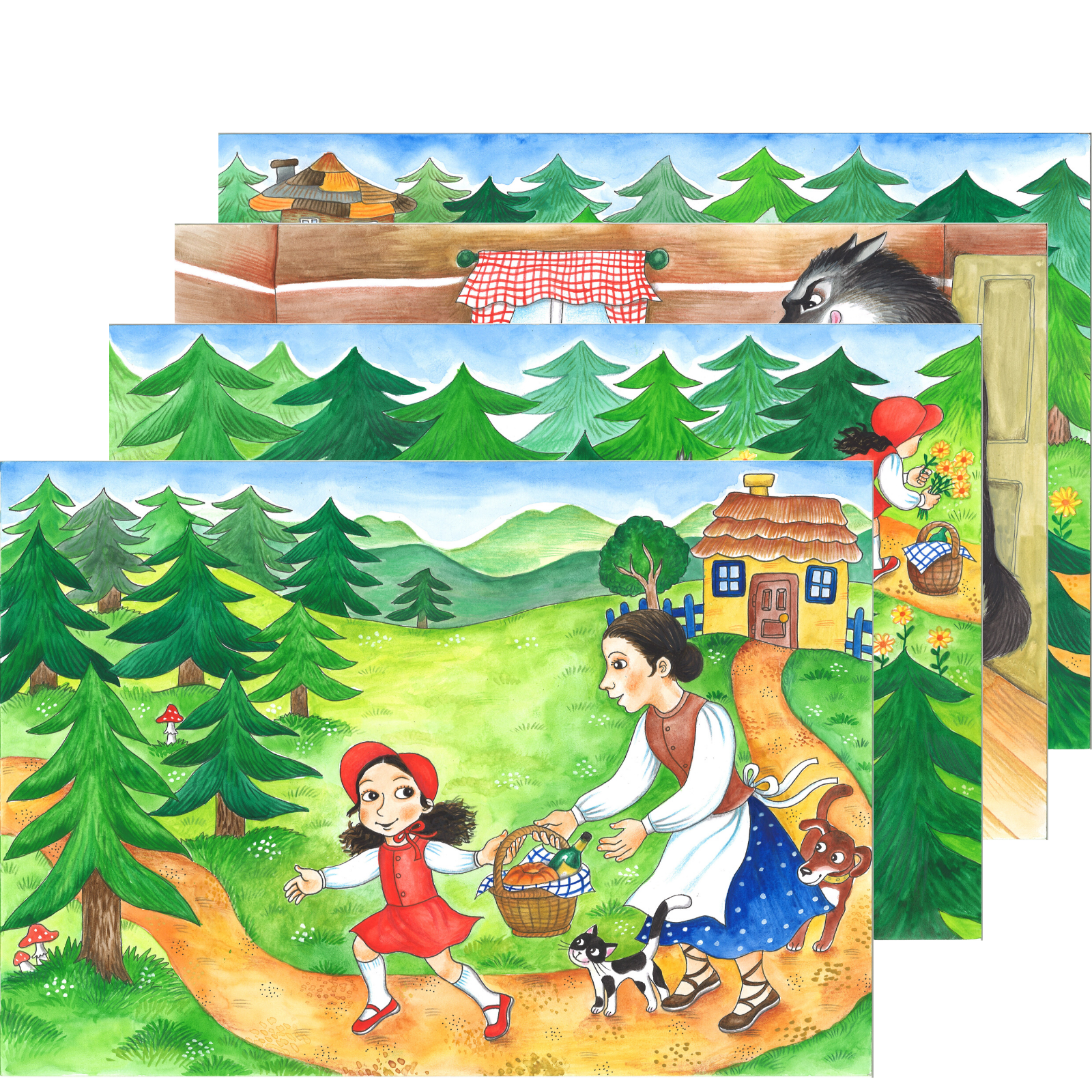 Klasická pohádka Červená Karkulka zpracovaná pro použití v Pohádkovém kufříku.