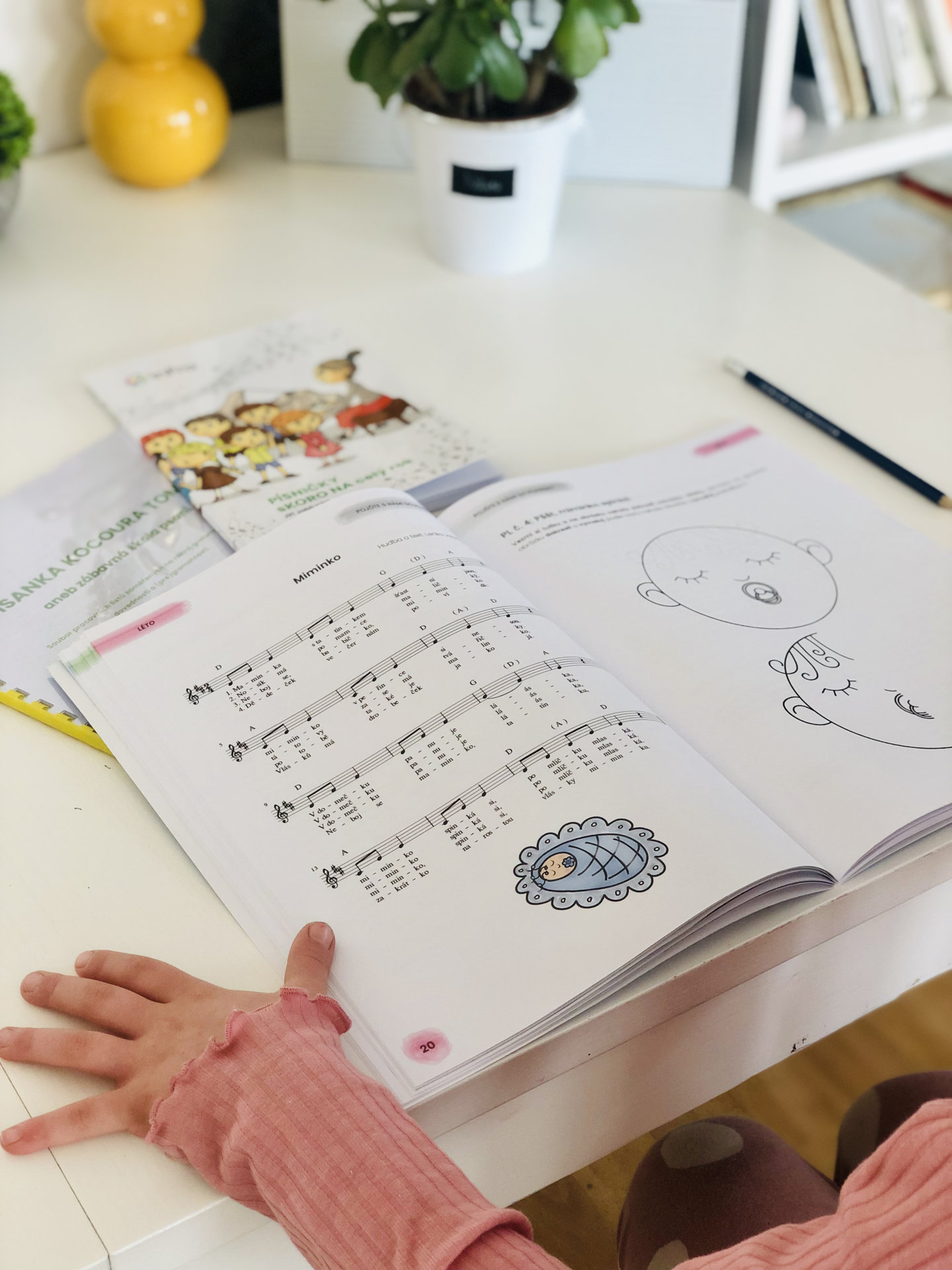 Po pohádce následuje básnička a písnička včetně notového zápisu. Recitací a zpěvem rozvíjíme u dítěte cit pro rytmus a rým. Nechybí ani pracovní listy, kterými procvičujeme grafomotoriku, matematické představy a zrakové vnímání.