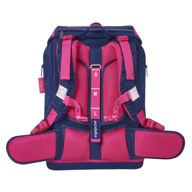 Školní batoh Motion je vhodný pro dívky na prvním stupni ZŠ, a to i pro vyšší prvňačky. Díky jednoduše nastavitelnému ergonomickému zádovému systému tašku snadno nastavíte podle aktuální velikosti dítěte. Odnímatelný bederní popruh umožňuje optimální rozložení váhy z ramen do horní pánevní oblasti. Integrovaný nastavitelný hrudní popruh poskytuje dodatečnou podporu při nošení, taška nesklouzává z ramen.