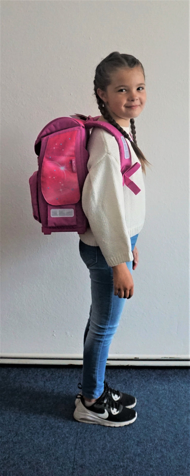 Další popis: anatomicky tvarovaná prodyšná, polstrovaná záda polstrované, dostatečně široké ramenní popruhy pevné plastové dno je lehce omyvatelné a voduvzdorné, zabezpečuje dobrou stabilitu aktovky (stojí i prázdná) reflexní prvky z materiálu 3M ™ Scotchlite ™ ze všech stran boční kapsy s klopou na suchý zip pojmou i 0,5l zdravou láhev. Ze spodní části dna kapsy je suchý zip, který prázdnou kapsufixuje u těla tašky. přední kapsa, která pojme běžný svačinový box jednoduché zapínání vnitřní členění pohyblivou přepážkou materiál s vodoodpudivou impregnací.