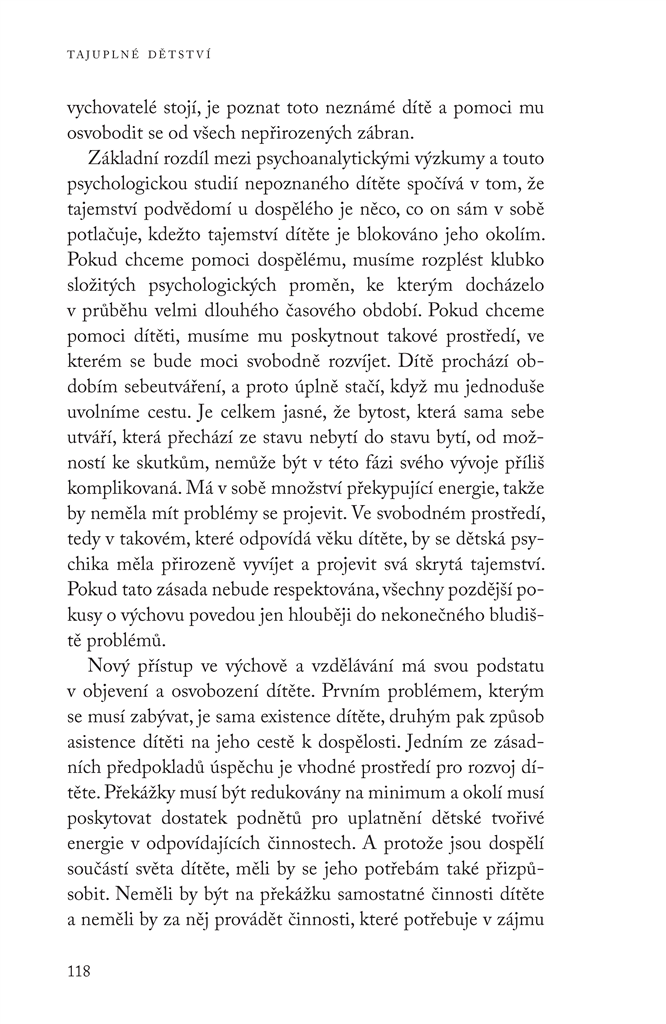 Tato kniha odhaluje vzdělávací metodu Marie Montessori. Klade důraz na raný vývoj dítěte a ukazuje dospělým, jak se sami mohou učit tomu, co děti přirozeně dokážou, jak je mohou pozorovat a pomáhat jim.